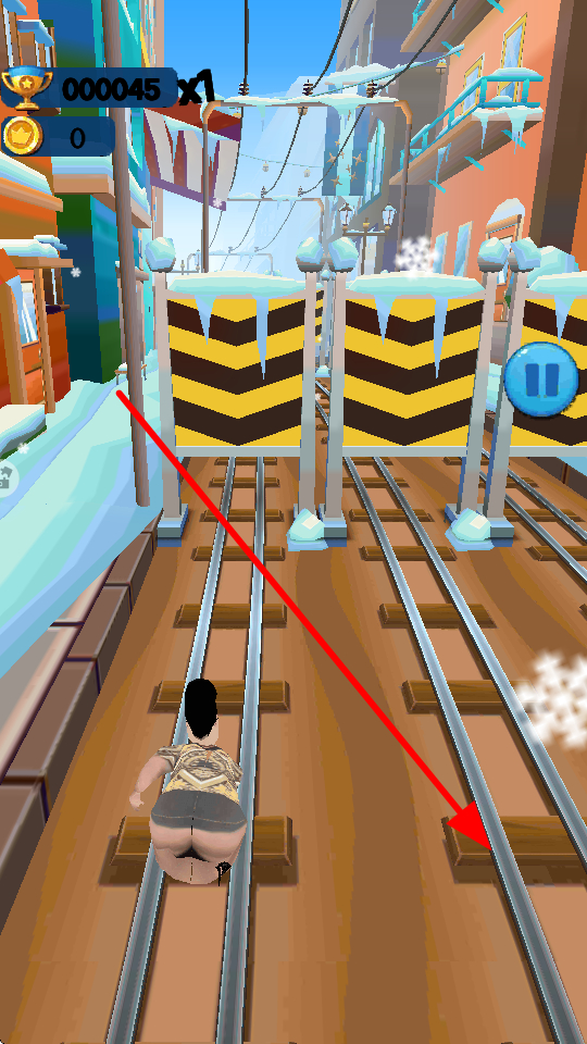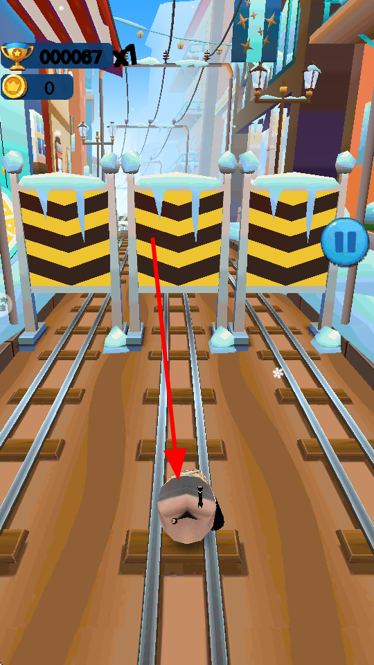 3、向上滑動屏幕,角色會高高躍起,可以越過前方的阻攔物,保持奔跑前行節(jié)奏。
