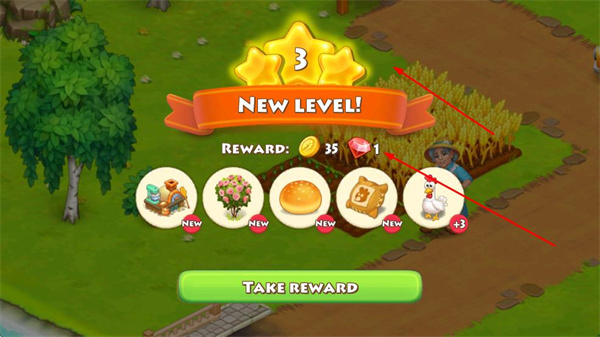 4、完成農(nóng)場(chǎng)相關(guān)任務(wù)后,可升級(jí)獲得新等級(jí),能得到金幣、紅寶石等獎(jiǎng)勵(lì)。