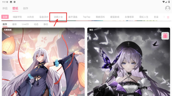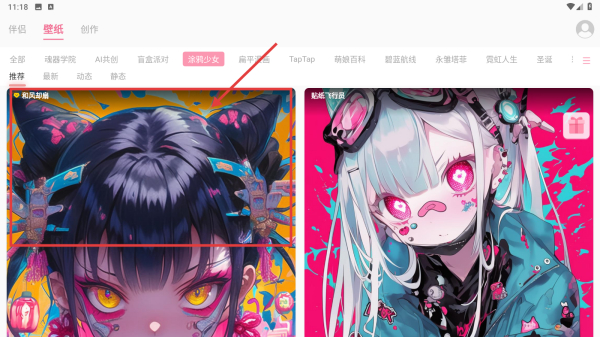 2、在壁紙分類頁面,點擊涂鴉少女標簽,篩選涂鴉風格壁紙。