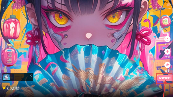 3、在涂鴉少女壁紙列表中,選擇心儀壁紙如和風卻扇,點擊進入壁紙詳情頁。