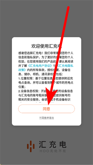1、打開(kāi)匯充電,在彈窗中點(diǎn)擊同意。