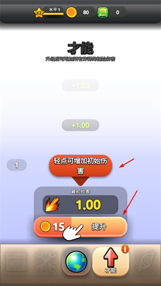 1、在才能界面,可花費金幣提升初始傷害,升級后能增強爆破能力,助力后續(xù)爆破建筑。