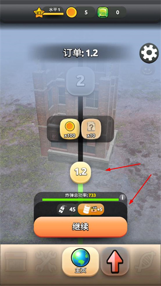 2、接取訂單后,可查看相關(guān)獎勵,點擊繼續(xù)進入爆破建筑的環(huán)節(jié)。