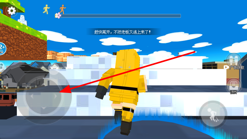 2、點擊跳躍按鈕,可以讓角色快速躍起,可輕松跨越障礙,也能躲避從后方追來的老板。
