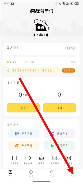 1、打開(kāi)瘋狂背單詞APP,點(diǎn)擊底部我的。
