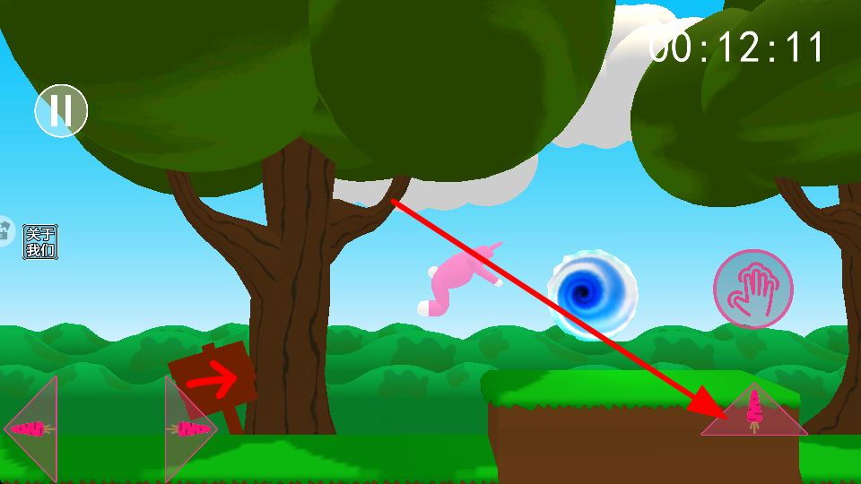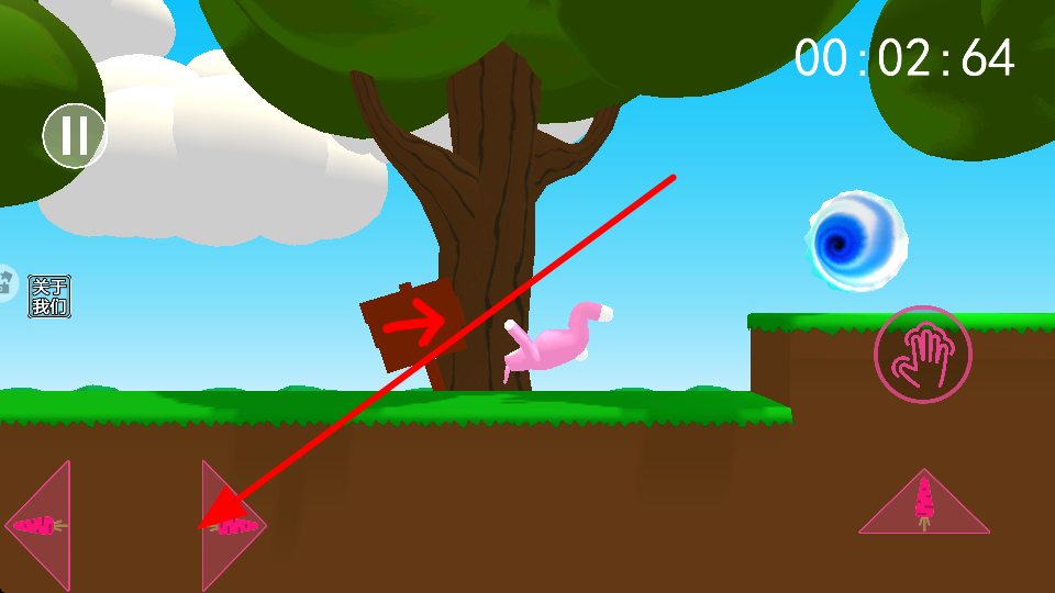 2、玩家可以點擊跳躍按鈕,讓萌兔高高躍起,輕松跨越溝壑等障礙,快速靠近傳送門。