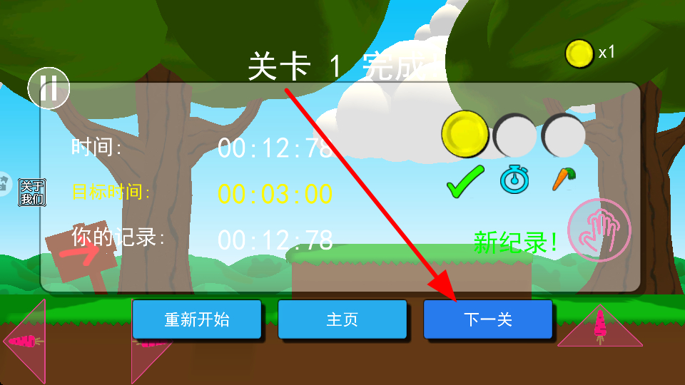 4、成功操控萌兔到達傳送門,就能順利通關(guān),之后可選擇進入下一關(guān),開啟新的挑戰(zhàn)。