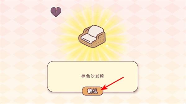 3、獲得新家具如棕色沙發(fā)椅后,點(diǎn)擊確認(rèn)按鈕,確認(rèn)獲取該家具,加入可布置的家具列表。