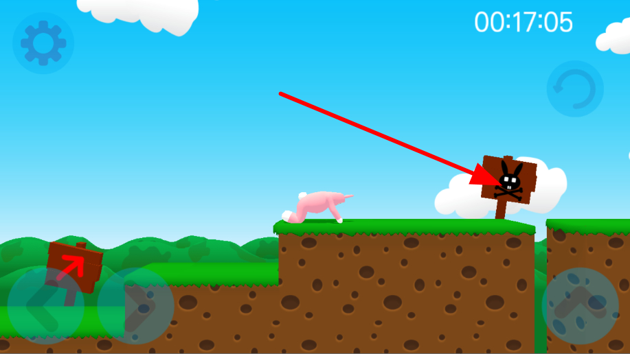 1、點擊屏幕下方的左右方向按鈕,靈活操控粉色萌兔在草地場景里前行,朝著目標(biāo)位置移動。