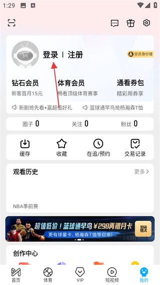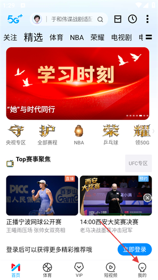 1、進(jìn)入咪咕視頻首頁(yè),點(diǎn)擊底部我的,進(jìn)入個(gè)人頁(yè)面。