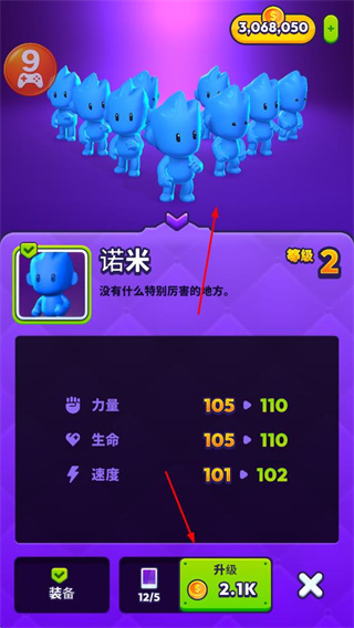 3、可對(duì)諾米進(jìn)行升級(jí),消耗金幣提升其力量、生命、速度等屬性,增強(qiáng)戰(zhàn)斗能力。
