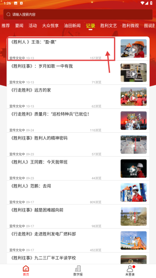 2、在記錄板塊,找到勝利人王浩:盈·贏新聞條目,點擊進入新聞詳情頁。