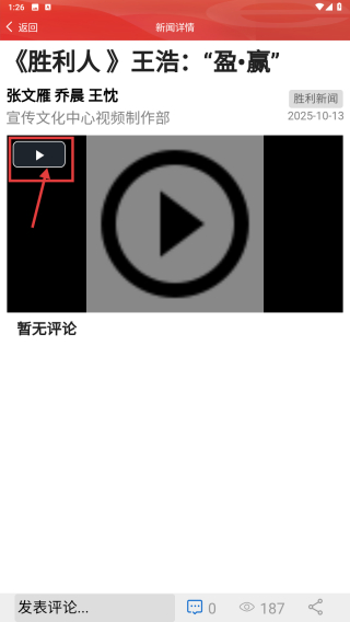 3、在新聞詳情頁,點擊視頻播放按鈕,觀看新聞視頻內(nèi)容。