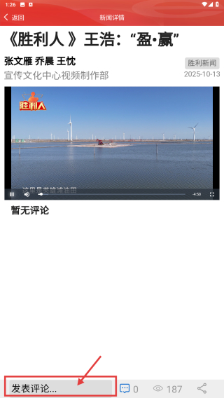 4、在頁面底部,點擊發(fā)表評論輸入框,可輸入評論參與互動。