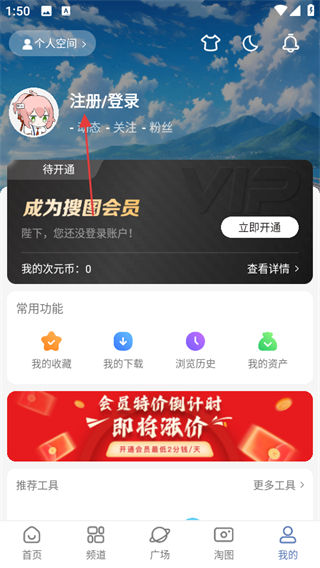 1、進入搜圖神器,在首頁點擊底部我的,進入個人頁面。