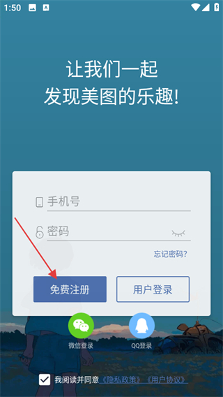 5、在注冊賬號頁面,輸入信息,勾選協(xié)議后點擊免費注冊,完成賬號注冊。