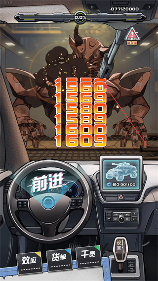 2、留意屏幕上方的血量條如耐久100/100,若怪物攻擊,及時點擊屏幕反擊,避免車輛耐久降低過多。