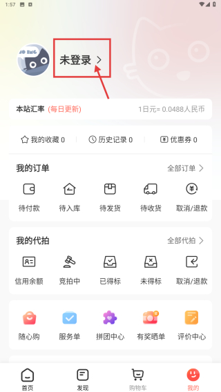 1、打開任你購(gòu)應(yīng)用,點(diǎn)擊底部我的選項(xiàng),進(jìn)入個(gè)人中心頁(yè)面。