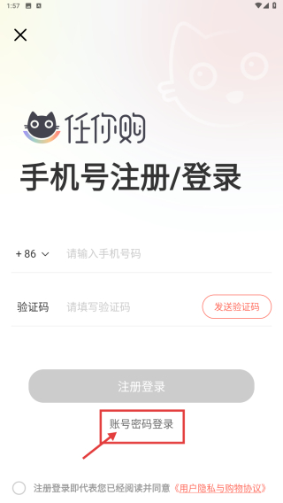 3、選擇賬號(hào)密碼登錄選項(xiàng),進(jìn)入密碼登錄模式。