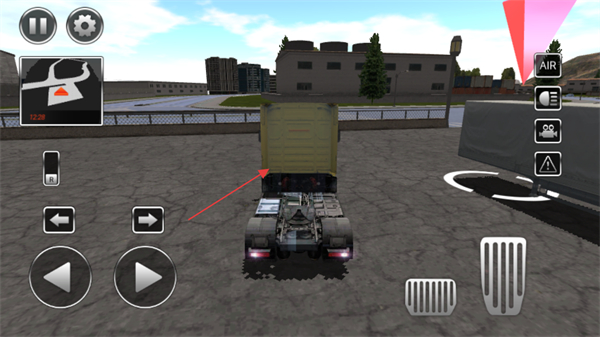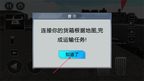 2、操控屏幕左側(cè)方向按鈕,將卡車行駛到貨箱位置,連接貨箱。