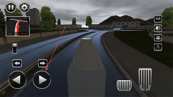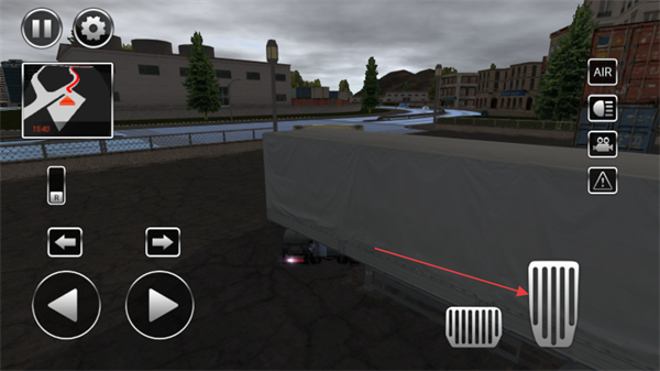 3、連接好貨箱后,點擊屏幕右側(cè)的油門按鈕,啟動卡車開始行駛。