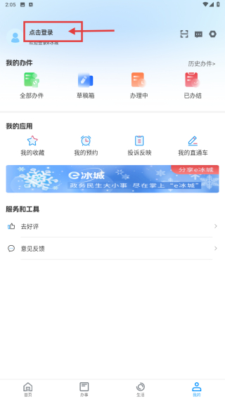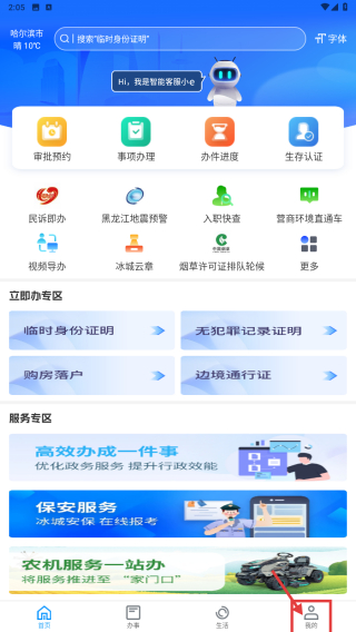 1、打開(kāi)e冰城政務(wù)應(yīng)用,點(diǎn)擊底部我的選項(xiàng),進(jìn)入個(gè)人中心頁(yè)面。