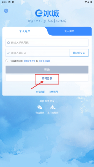 3、選擇密碼登錄選項(xiàng),進(jìn)入密碼登錄模式。