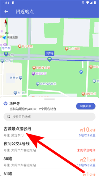 3、進(jìn)入附近站點(diǎn)頁面,選擇目標(biāo)線路。