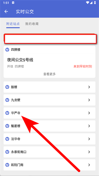 2、在實(shí)時公交頁面,選擇要查詢的站點(diǎn)。