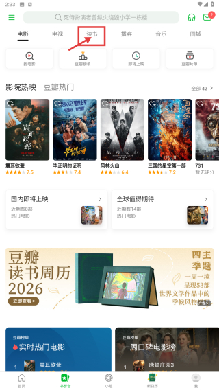 2、在閱看板塊,點(diǎn)擊讀書分類標(biāo)簽,進(jìn)入讀書頻道。
