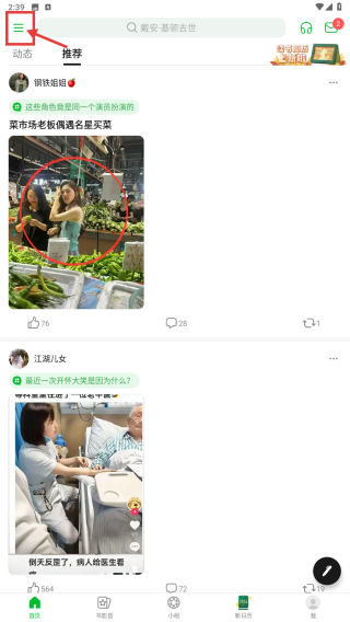 1、打開豆瓣應(yīng)用,點(diǎn)擊左上角菜單圖標(biāo),進(jìn)入設(shè)置界面。