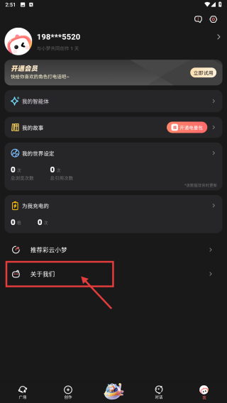 2、在個(gè)人中心,點(diǎn)擊關(guān)于我們選項(xiàng),進(jìn)入關(guān)于我們界面。