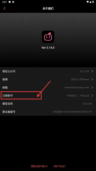 3、在關(guān)于我們頁(yè)面,點(diǎn)擊注銷(xiāo)賬號(hào)選項(xiàng),進(jìn)入注銷(xiāo)流程界面。