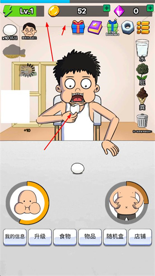 1、可通過角色進食等操作積累金幣,金幣數(shù)量會在界面上方顯示。