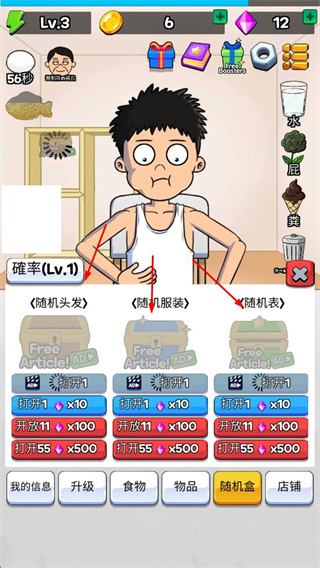 3、可通過隨機盒功能,消耗對應(yīng)道具或金幣,獲取隨機頭發(fā)、隨機服裝、隨機表等物品。