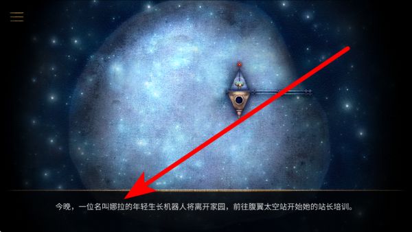 1、進入游戲后,會有劇情引導,了解機器人娜拉將離開家園,前往腹翼太空站培訓的背景。