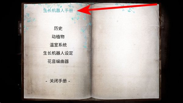 4、當遇到難題時,可查看生長機器人手冊,手冊里有歷史、動植物、溫室系統(tǒng)等多方面內(nèi)容,能從中獲取解謎的線索與知識,幫助理解場景中的機關或任務要求。