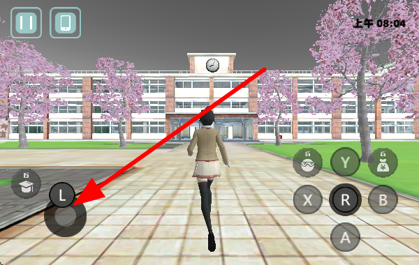 2、進(jìn)入游戲校園后,用左側(cè)操控鍵控制角色移動(dòng)方向,朝著學(xué)校建筑等目標(biāo)位置前進(jìn)。