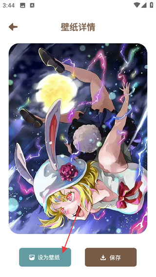 4、在壁紙?jiān)斍轫?yè)面,點(diǎn)擊設(shè)為壁紙,即可將該壁紙?jiān)O(shè)置為設(shè)備壁紙。