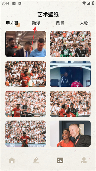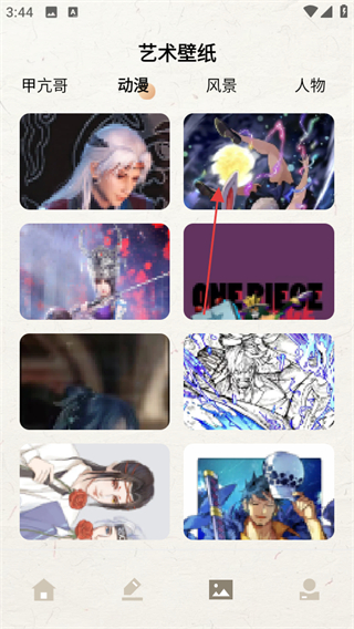 2、在藝術(shù)壁紙頁(yè)面,點(diǎn)擊動(dòng)漫分類,查看動(dòng)漫類壁紙。