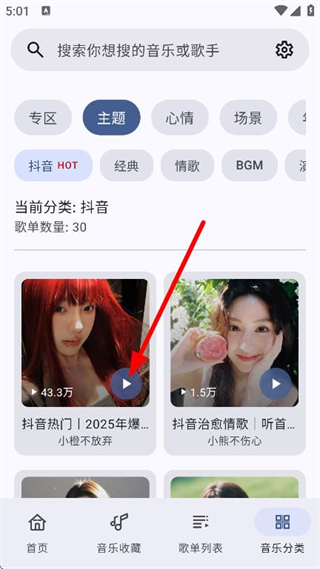 2、在音樂分類頁面,點(diǎn)擊要播放的歌單,進(jìn)入歌單播放并播放歌曲。