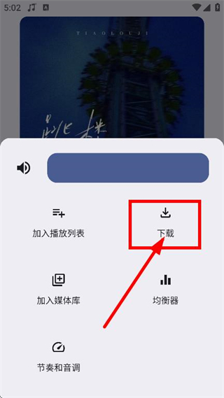 4、在彈出的操作選項中,點(diǎn)擊下載,下載當(dāng)前播放的歌曲。