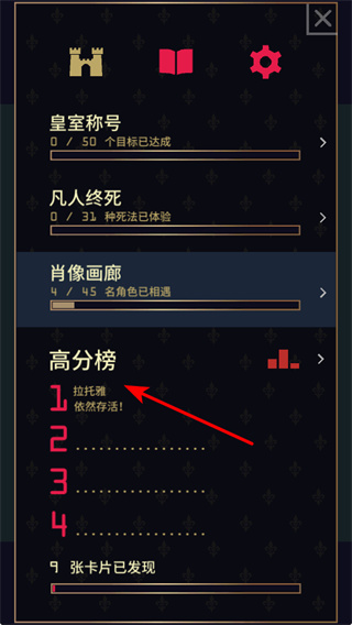 3、達(dá)成成就,在高分榜等界面查看成就進(jìn)度,通過(guò)存活等方式提升排名,解鎖更多游戲成就。