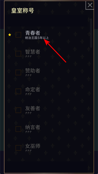 4、獲取稱號(hào),完成青春者等稱號(hào)解鎖條件如統(tǒng)治王國(guó)5年以上,獲取皇室稱號(hào),提升角色聲望。
