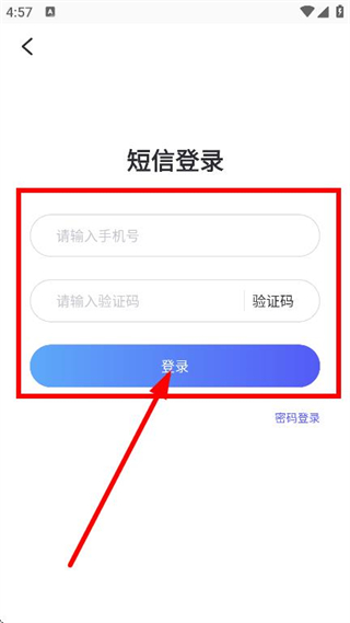 4、在短信登錄頁面,輸入手機號和驗證碼后,點擊登錄,完成登錄操作。