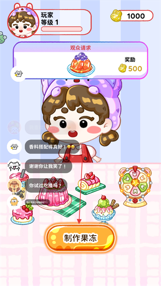 1、進(jìn)入游戲,查看觀眾請求的果凍樣式,明確目標(biāo),點(diǎn)擊制作果凍開始制作。