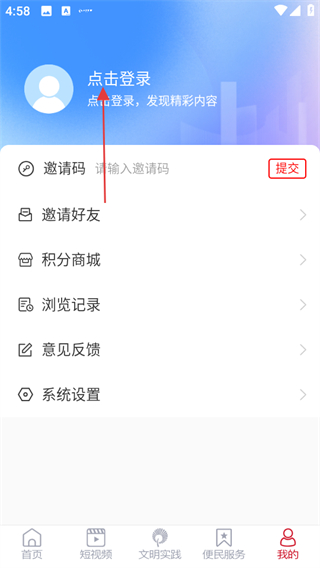 2、在個(gè)人頁(yè)面,點(diǎn)擊點(diǎn)擊登錄,進(jìn)入用戶登錄頁(yè)面。