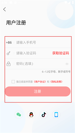 4、在用戶注冊(cè)頁(yè)面,輸入信息,勾選協(xié)議后,點(diǎn)擊注冊(cè),完成賬號(hào)注冊(cè)。