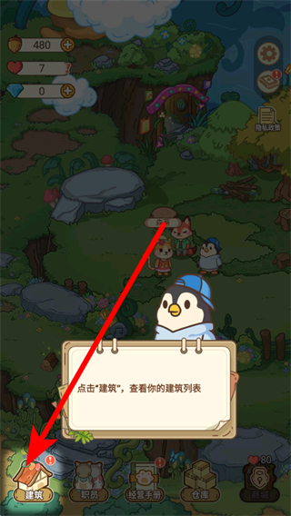 2、按照指引,點(diǎn)擊地面上的橡子,收取橡子資源,橡子可用于后續(xù)建筑建造等操作。