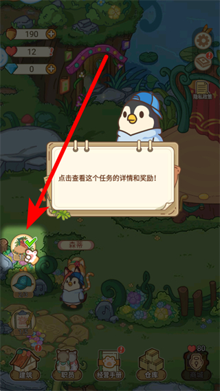 4、留意任務(wù)提示,點(diǎn)擊相關(guān)任務(wù)區(qū)域,查看任務(wù)詳情和獎(jiǎng)勵(lì),完成任務(wù)獲取更多資源與獎(jiǎng)勵(lì),助力經(jīng)營(yíng)。